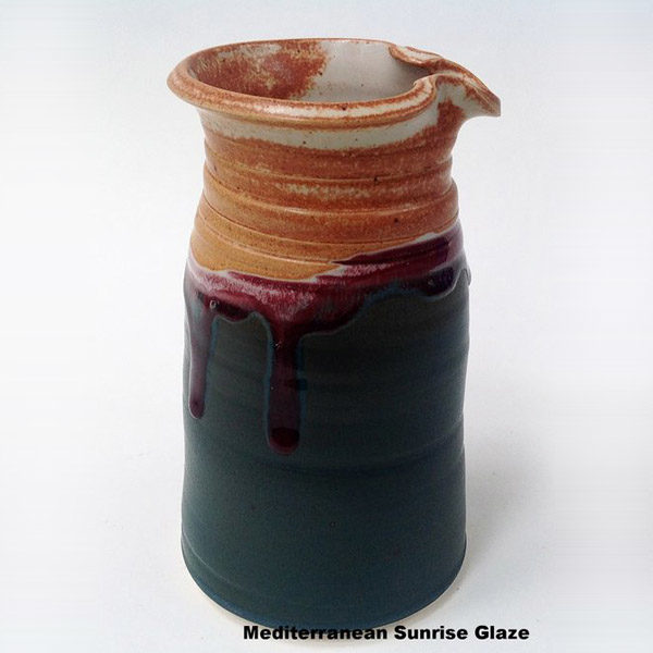 An excellent addition to your communion set. The carafe is 7.5″ H X 4.25″ Dia. Sizes and colors vary in handmade items.