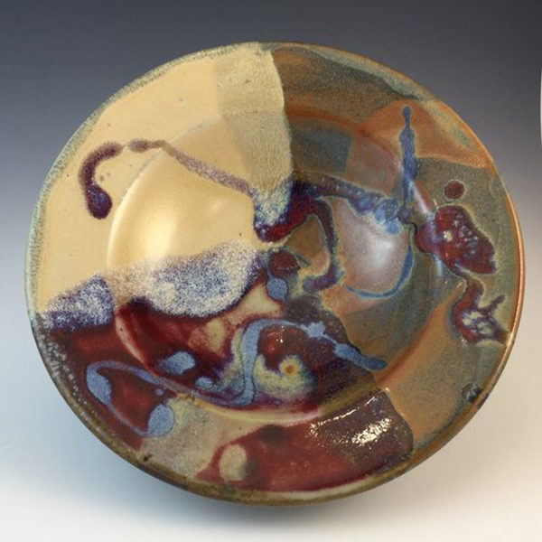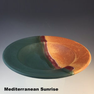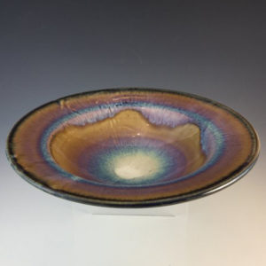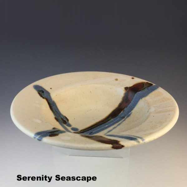 A rimmed soup or cereal bowl. An intimate part of our four piece place setting but can be purchased separately. 2 inches high and 8.5 inches in diameter. This is a handmade piece of pottery all sizes are approximate and glaze colors vary.