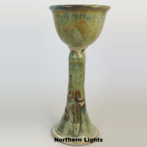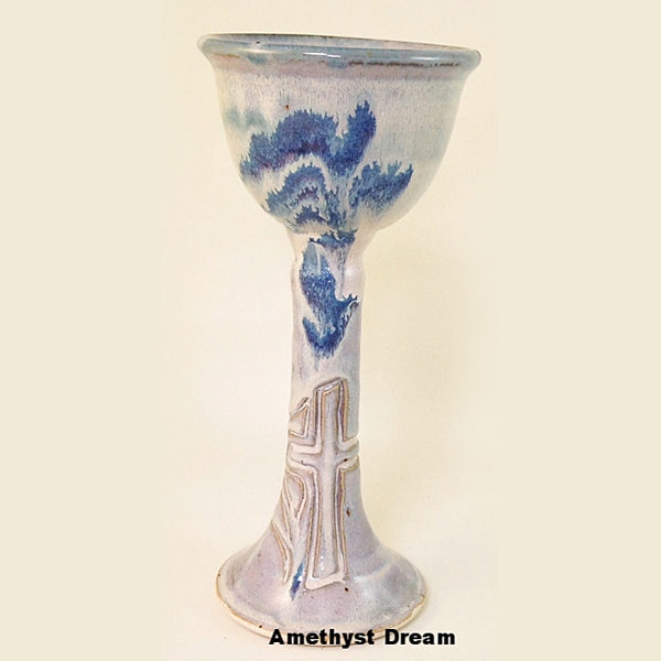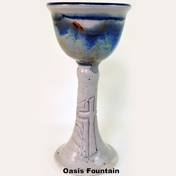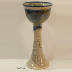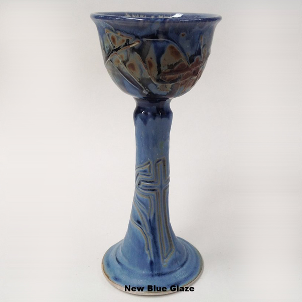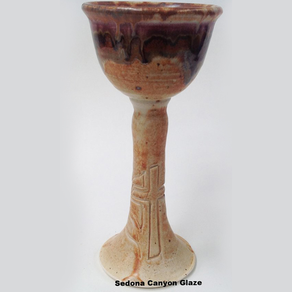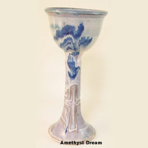 Our Chalices are both elegant and sturdy making them a good fit for and any worship setting. They also come in a wide variety of glaze combinations. They measure approximately 10.5″ H X 4.5″ Dia. We produce several different size and shape Plates to match.