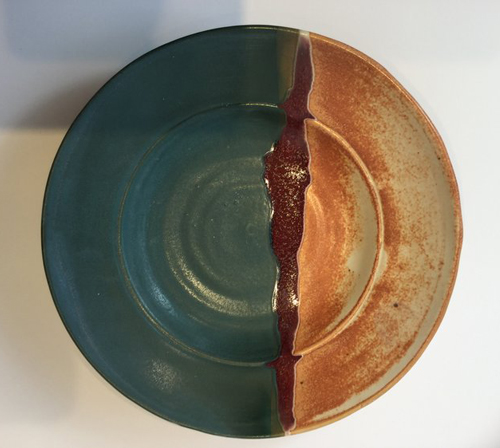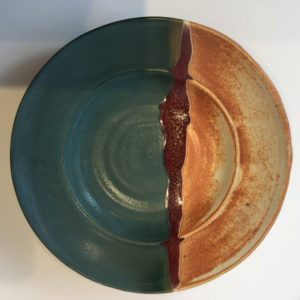 The Fromme Bowl (Pasta, Salad, One Dish Meal, Small Serving Enough for 4 Bowl)is named after Bob Fromme a potter in San Antonio who designed the shape. It is a marvelous bowl for a salad or a one dish meal. The center dished out section is my estimation of a reasonable portion but it has a wide lip to accommodate the “I got carried away” portion. I had a salad with smoked salmon on top in this bowl last night and it was amazing. 10 1/8” Dia X 1.5”H Sizes and glaze colors vary slightly because they are hand made.