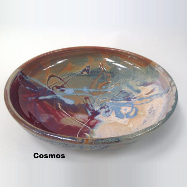 This bowl is both decorative and functional. It was hand thrown and fired to 2400 degrees. It can be used in both the microwave and dishwasher. 13.5″ in Diameter and 3″ high approx.